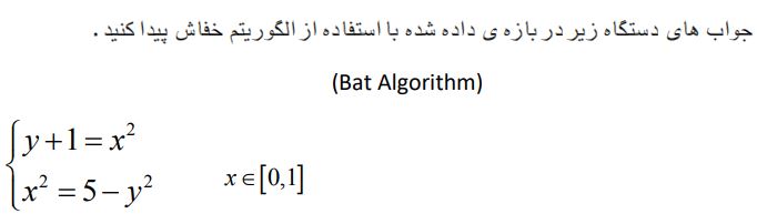 دستگاه معادله ای که در تصویر زیر نشان داده شده است توسط الگوریتم خفاش حل شده است: