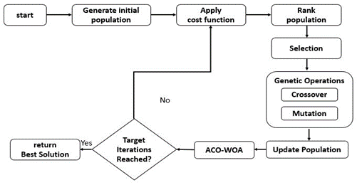 فلوچارت رویکرد پیشنهادی (GACO-WOA) بصورت می باشد: